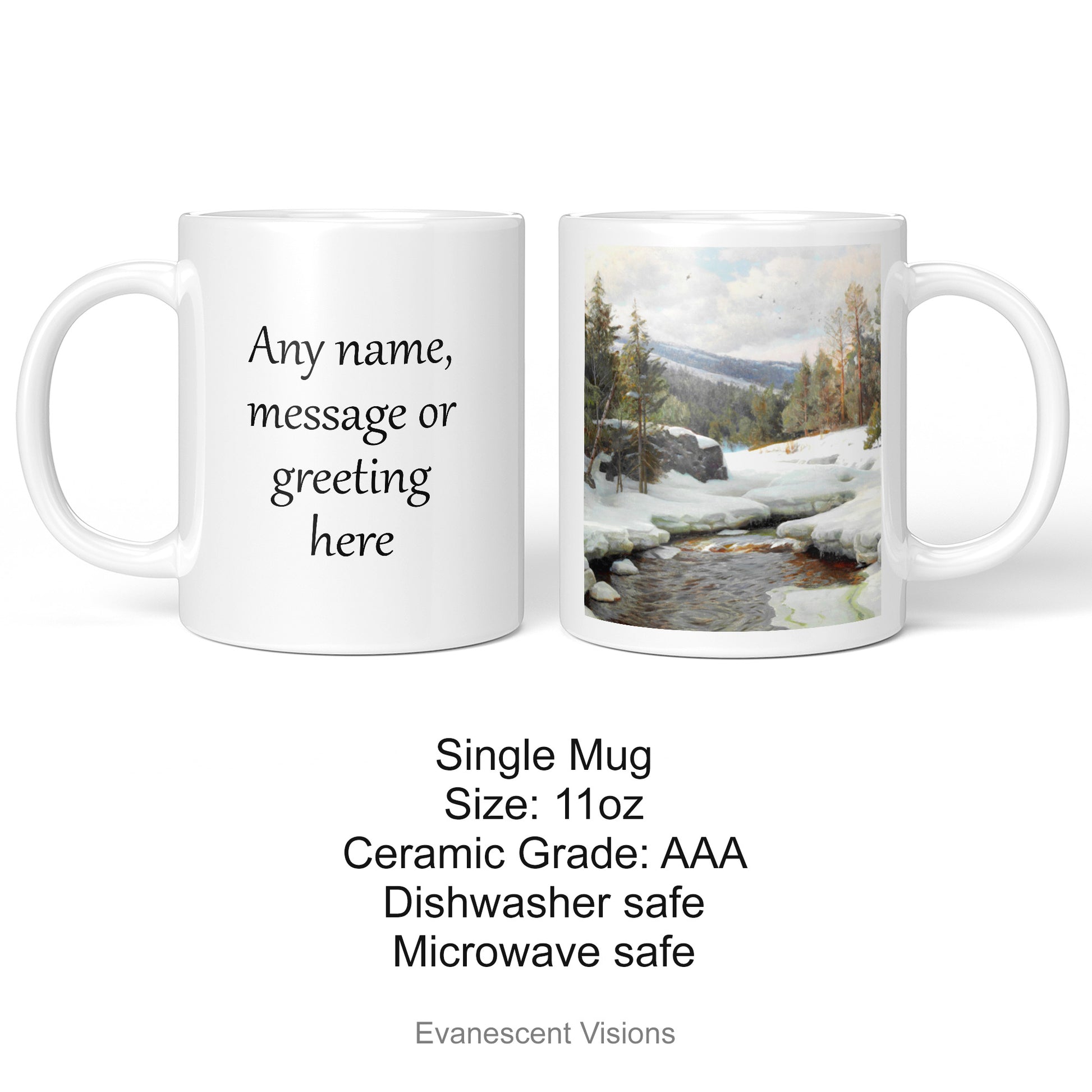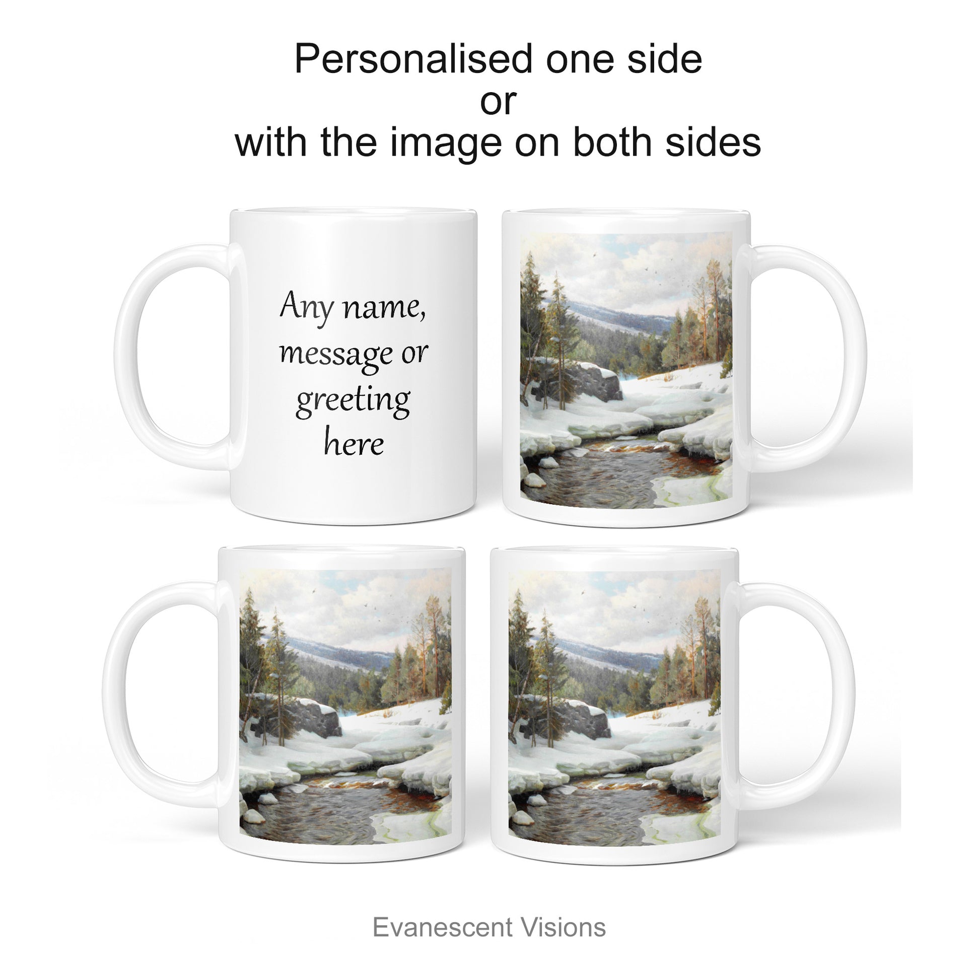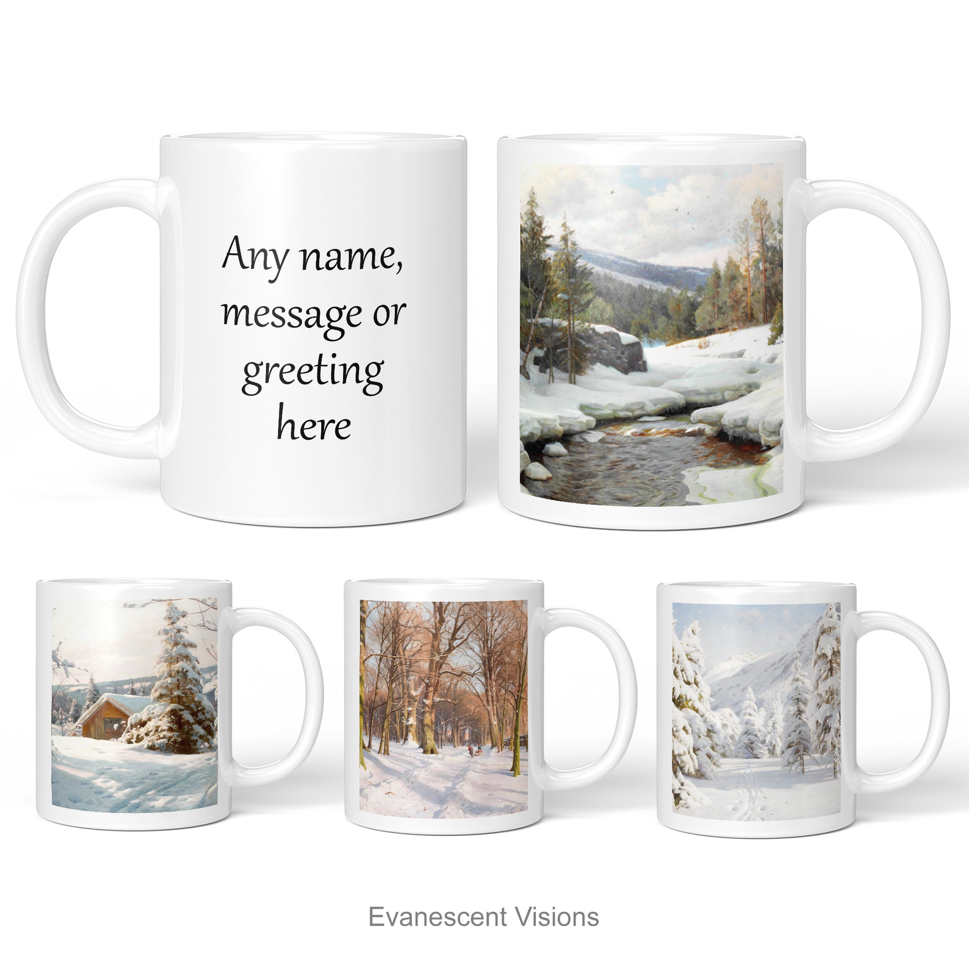 Personalised Winter Landscape Mugs, Christmas Art Mugs