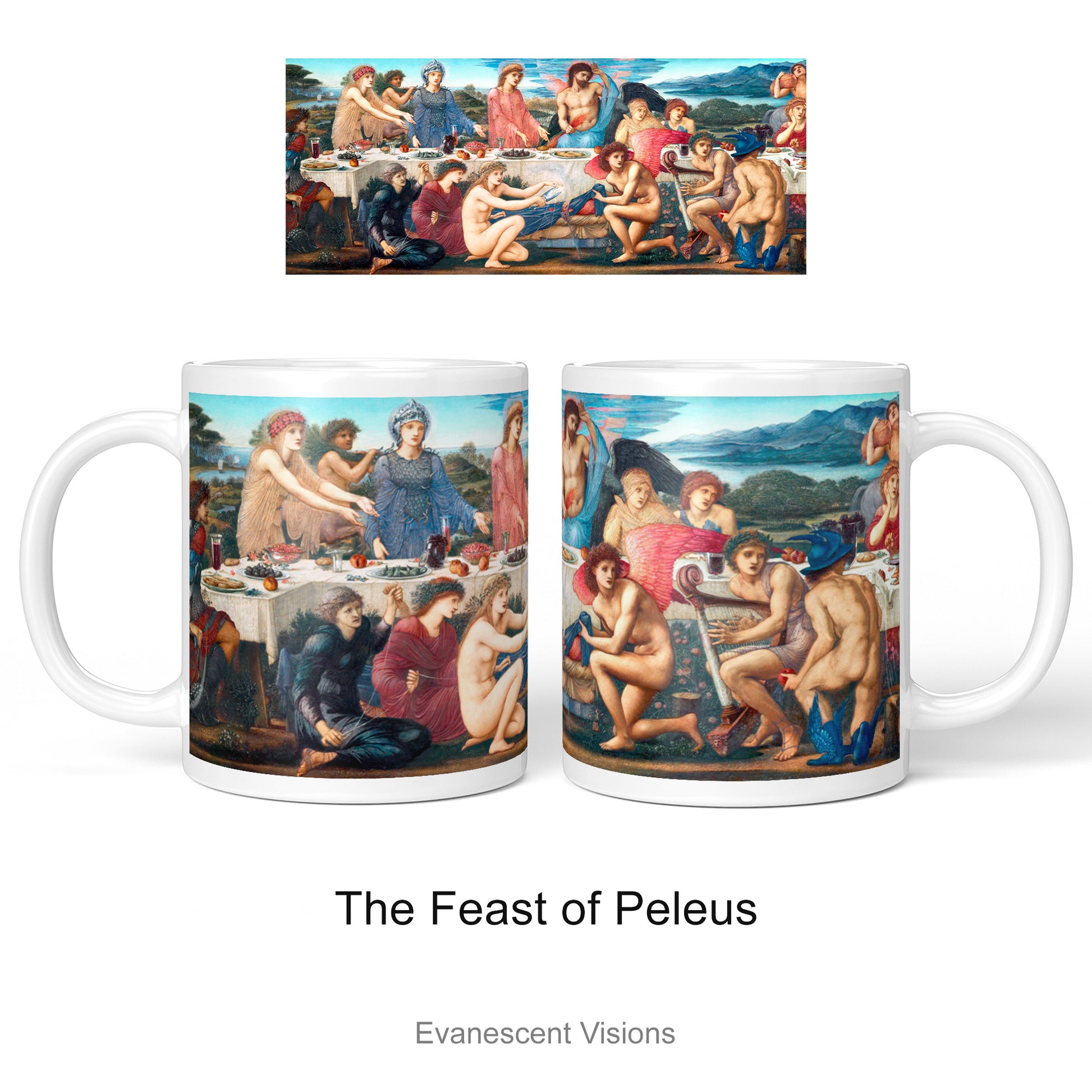 1. The Feast of Peleus, a gathering of Greek gods for a marriage feast. This is the moment at which the uninvited goddess of Discord, Eris, has just arrived with her sinister bat-wings and hair entwined with snakes, ready to throw the Apple of Discord into their harmonious gathering.