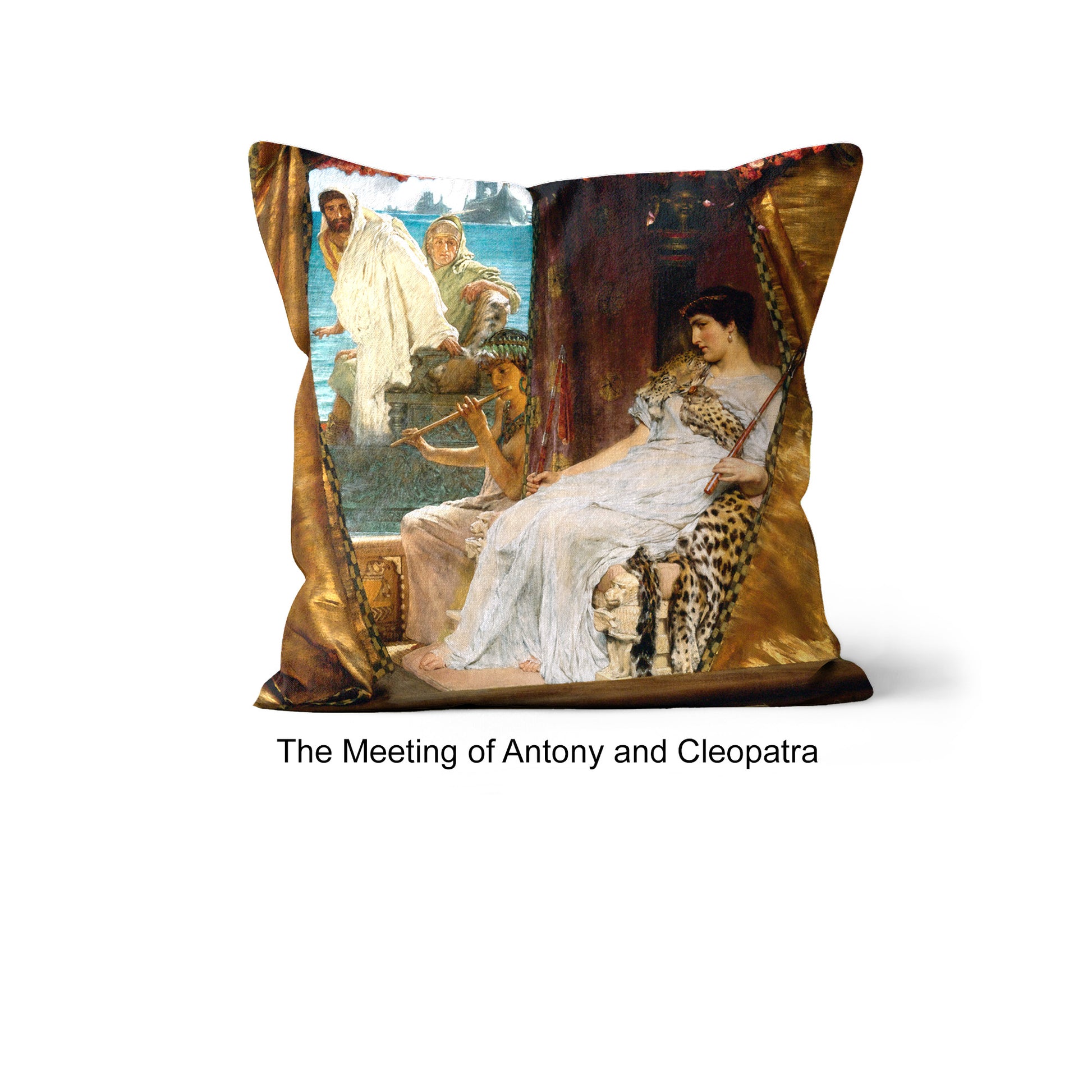 A single decorative fine art cushion available in two sizes and four designs by Victorian classical master artist, Lawrence Alma-Tadema (1836-1912). Choose from The Finding of Moses, The Roses of Heliogabalus, The Women of Amphissa and The Meeting of Antony and Cleopatra.