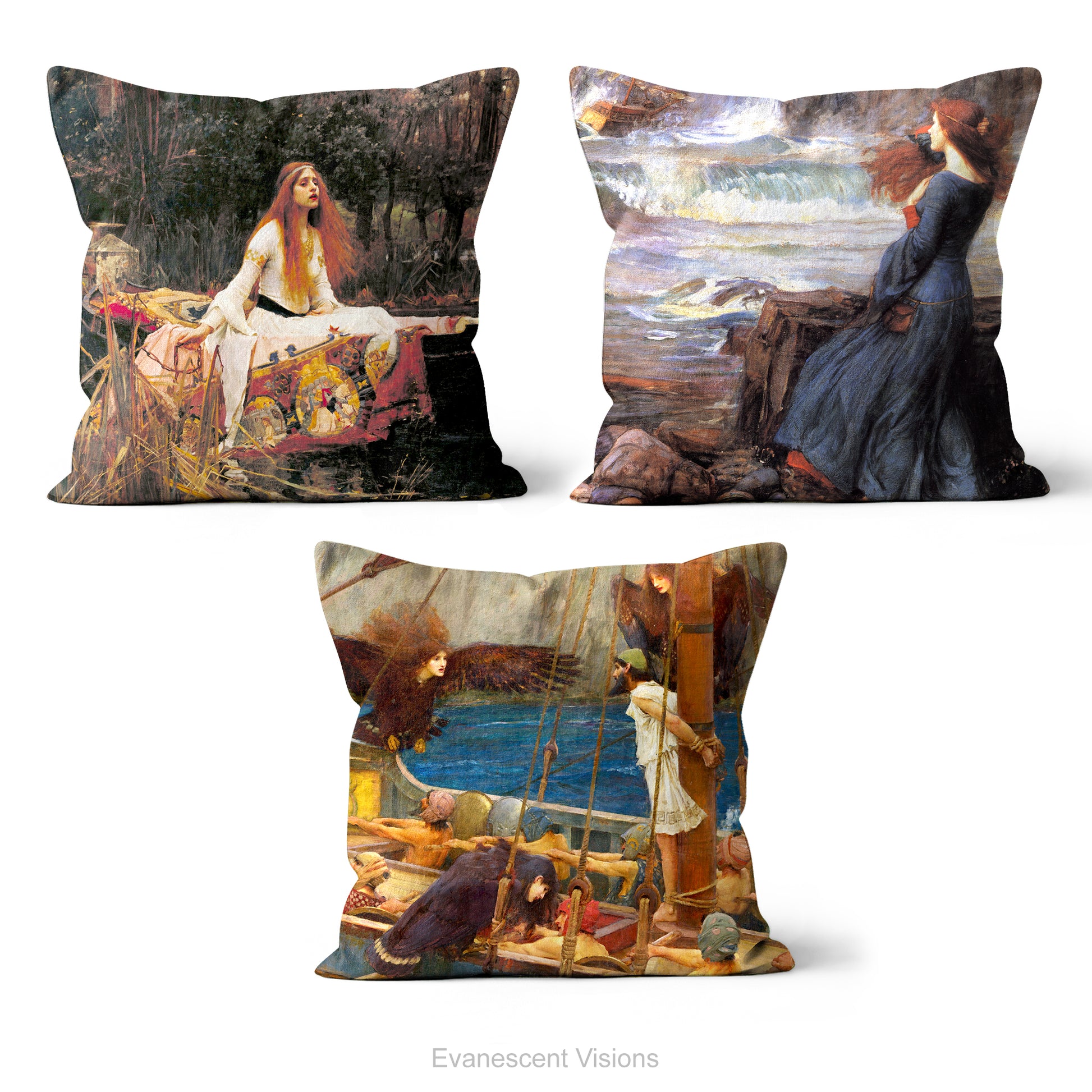 John William Waterhouse Decorative Art Cushions, Miranda, Lady of Shalott, Ulysses